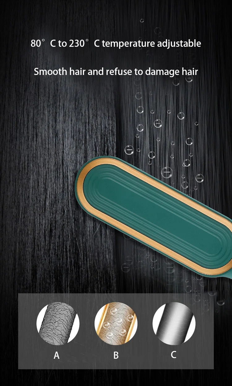 Função : Sem fio Portátil , ÍON-, Termostaticamente Operado, Tensão internacional, Anti-Queimaduras Material : Cerâmica turmalina Número do modelo : Hair Comb straightener A1 Modo de montagem da extremidade do cabo de força: Giratório 360° Tempo ideal de estilização : 3-5 min. Certificado : CE